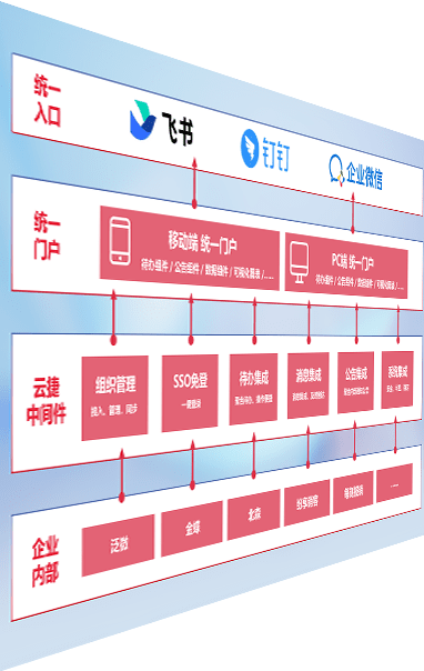 对协作平台提供支持服务,,,支持企业应用与协作平台对接,,包含组织同步、、、、消息集成、、、待办集成等。。。支持目前主流的协作平台:钉钉、、企微和飞书。。。